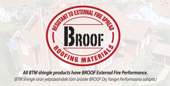 Eğimli çatı kaplama malzemesi olan shingle yaygın olarak kullanılan ve kullanımı her geçen gün artan bir üründür. BROOF Dış Yangın Performansına sahiptir.