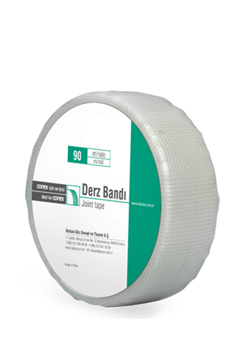 Derz bandı COREX bölme duvar,giydirme duvar ve asma tavan sistemlerinin yapımında, alçı levha derzlerinde kullanılan kendinden yapışkanlı cam elyaf banttır. derz bandı, alçı levha ek yerlerinde çatlakları önler ve yüzeyin yekpare çalışmasını sağlar.