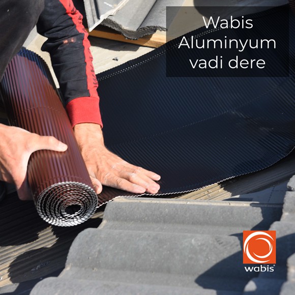 Wabis Alüminyum Vadi Dere (piyasada mail dere olarak da geçer) Roll One yağmur suyunu iki çatı eğiminin birleşim yeri boyunca toplamak ve boşaltmak için kullanılır. Ürünün enine deseni suyun hızını keser, boyuna kanallar ise kalan su birikintilerinin rahatlıkla akmasını sağlar.